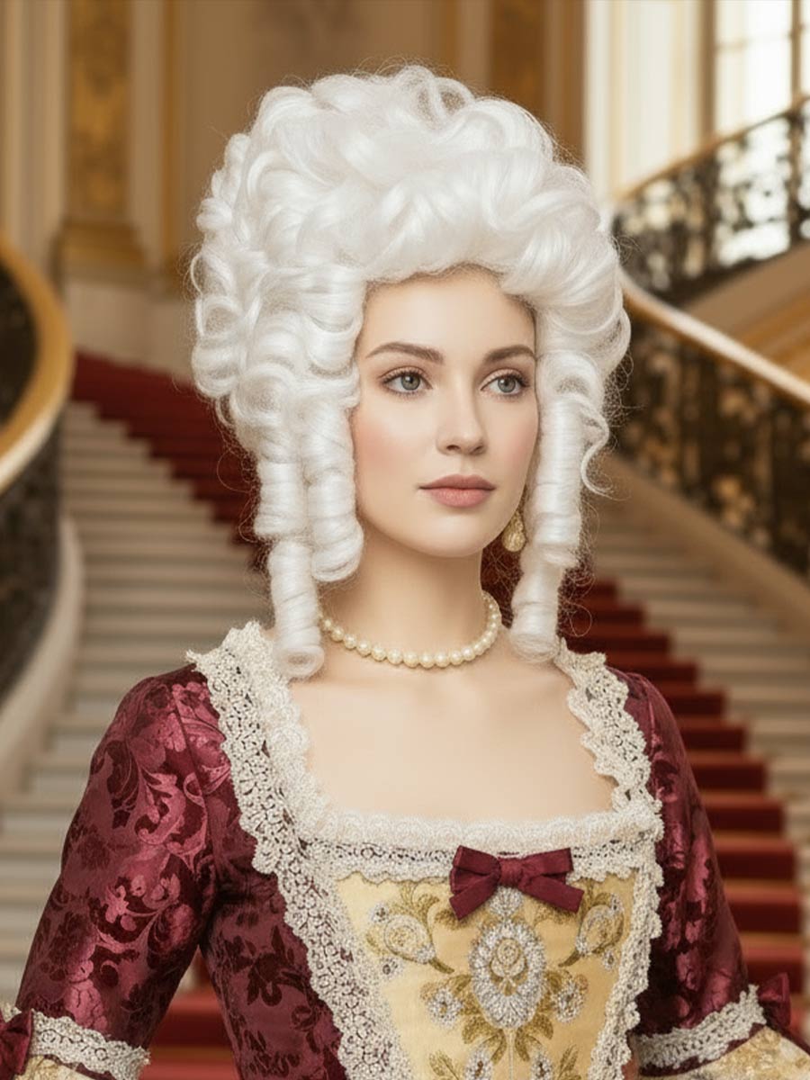 Данный парик используется  для создания  исторического образа. Парик сохранит свою форму  на всем периоде эксплуатации. Парик изготовлен из облегченного синтетического волокна. Шапочка парика изготовлена из тресс ленты. Парик не требует никакой укладки.