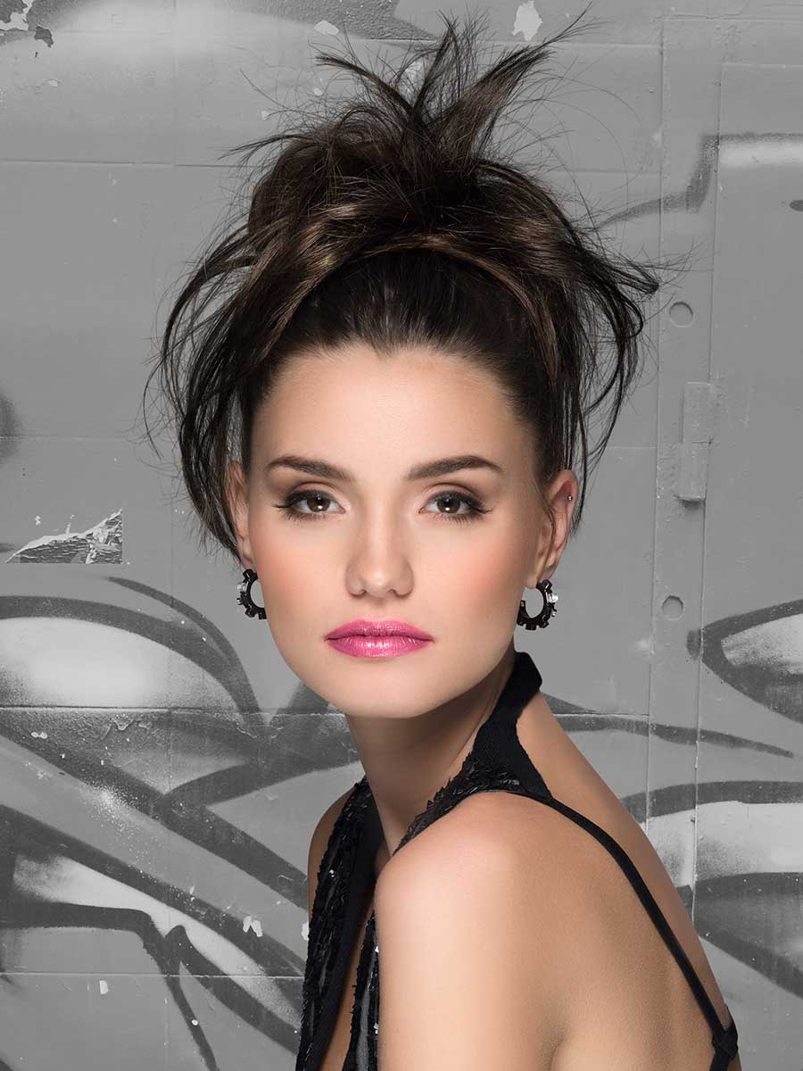 Максимально простое крепление. Волос прямой. Шиньон - резинка.